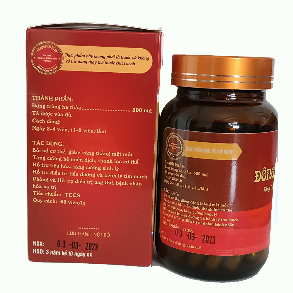 Đông trùng hạ thảo được coi là một loại dược liệu quý giá với nhiều công dụng nổi bật cho sức khỏe. Với thành phần chính là 300mg đông trùng hạ thảo cùng các tá dược thiết yếu, sản phẩm này giúp bồi bổ cơ thể, giảm căng thẳng và mệt mỏi hiệu quả. Không chỉ vậy, nó còn tăng cường hệ miễn dịch, hỗ trợ thanh lọc cơ thể và cải thiện chức năng sinh lý.