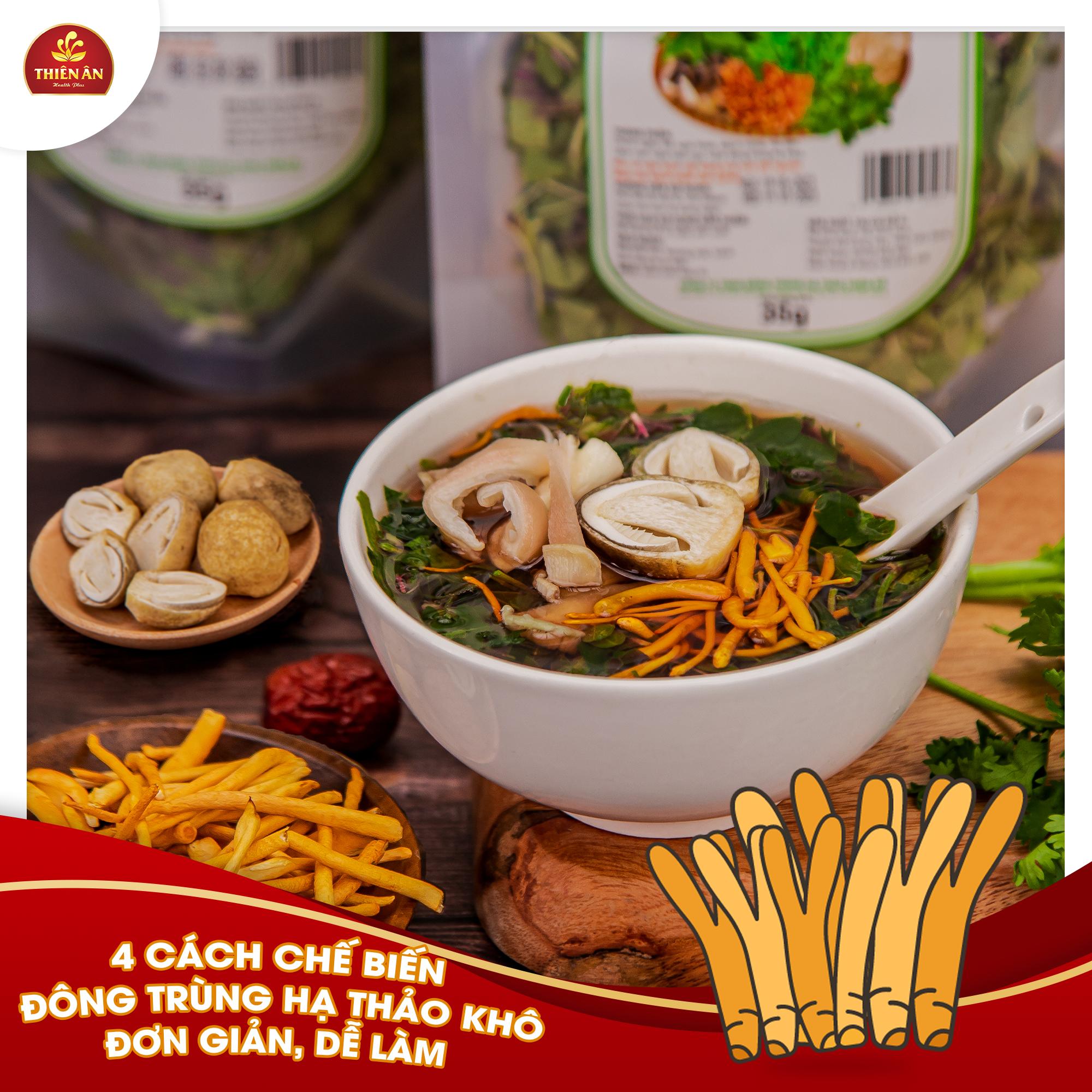 Trước khi sử dụng, hãy rửa sạch đông trùng hạ thảo với nước ấm, sau đó ngâm trong nước ấm khoảng 10-15 phút. Phương pháp này giúp nấm mềm và dễ nhai hơn. Nếu bạn muốn chế biến, có thể cho đông trùng hạ thảo vào cháo, súp hoặc các món hầm để bổ sung dinh dưỡng cho bữa ăn.