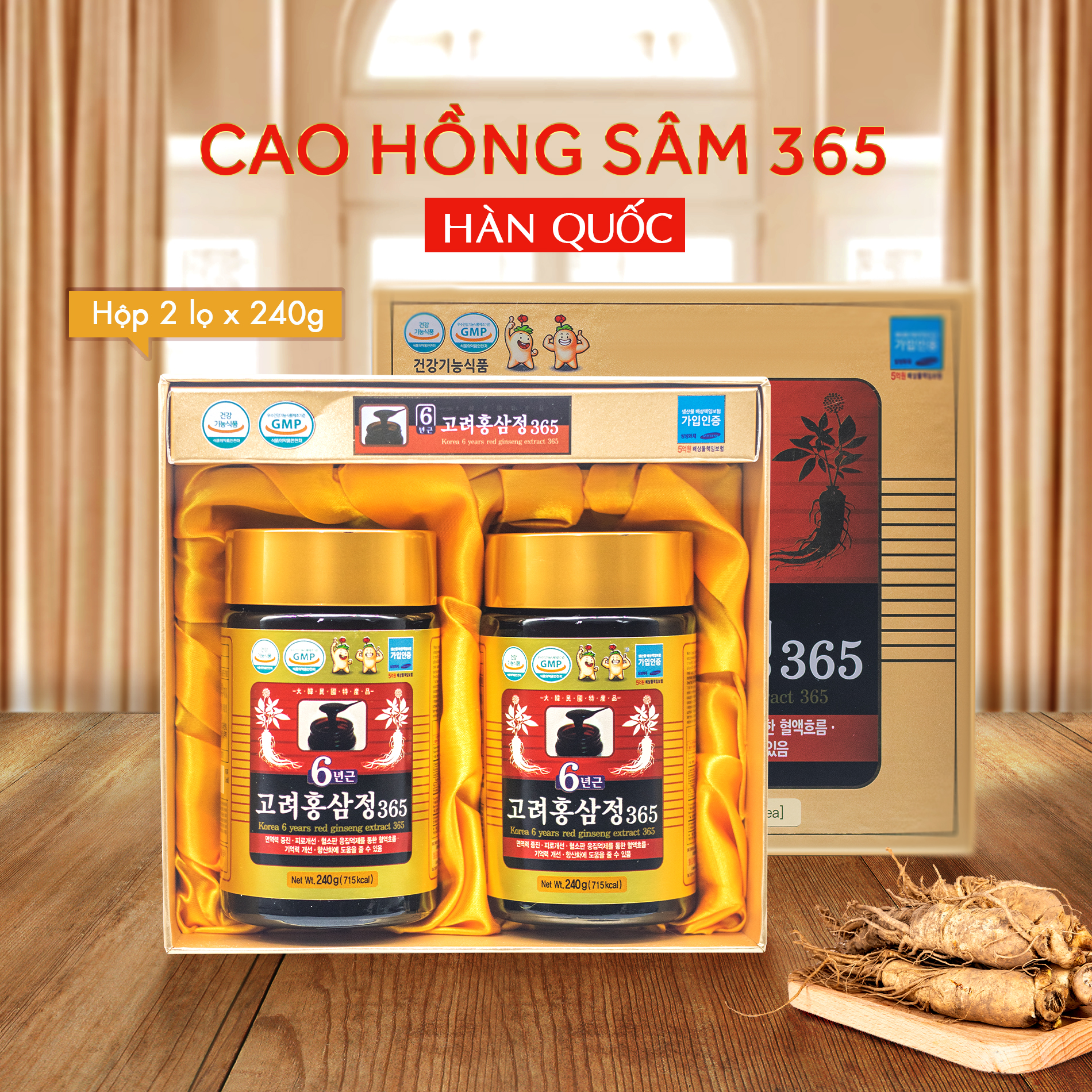 Sản phẩm còn cải thiện chức năng tình dục và tăng cường sinh lý, mang lại cảm giác tươi mới và tràn đầy năng lượng. Với quy cách đóng gói 240g x 2 hộp, Cao Hồng Sâm 6 Năm 365 là lựa chọn lý tưởng cho sức khỏe và sự phát triển toàn diện của cơ thể.