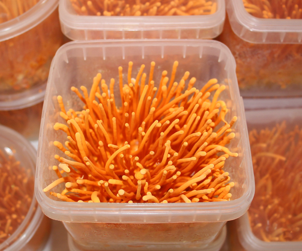 Tiếp theo, quá trình nuôi cấy bắt đầu bằng việc ủ các ký chủ là nhộng tằm, giúp nấm phát triển. Các nhà khoa học đã tìm ra phương pháp nuôi cấy nấm trên nhộng tằm sống hoặc sử dụng các thành phần dinh dưỡng tổng hợp để tối ưu hóa sinh khối. Trong suốt giai đoạn này, việc kiểm soát các yếu tố môi trường như ánh sáng và nhiệt độ là cực kỳ quan trọng để nấm có thể phát triển mạnh mẽ.