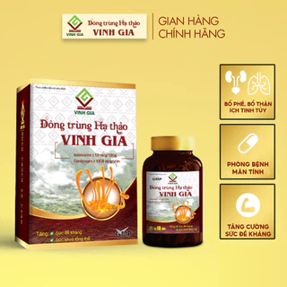 Đông Trùng Hạ Thảo Vinh Gia được chiết xuất từ đông trùng hạ thảo tươi, với mỗi viên chứa 500 mg công dụng hỗ trợ tăng cường sức khỏe, bổ phế, và bổ thận. Sản phẩm này rất thích hợp cho mọi lứa tuổi, hỗ trợ nâng cao sức đề kháng, cải thiện chức năng hô hấp và chức năng thận.