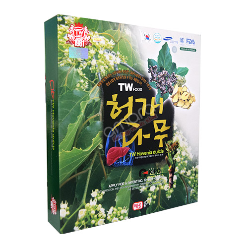 Gói giải rượu Hàn Quốc được sản xuất bởi Kyoungbuk College of Science Food Factory với thành phần chính là chiết xuất cây Hovenia, chiếm trên 80%. Đây là một trong những thảo dược nổi tiếng giúp làm mát gan và phục hồi chức năng gan hiệu quả.