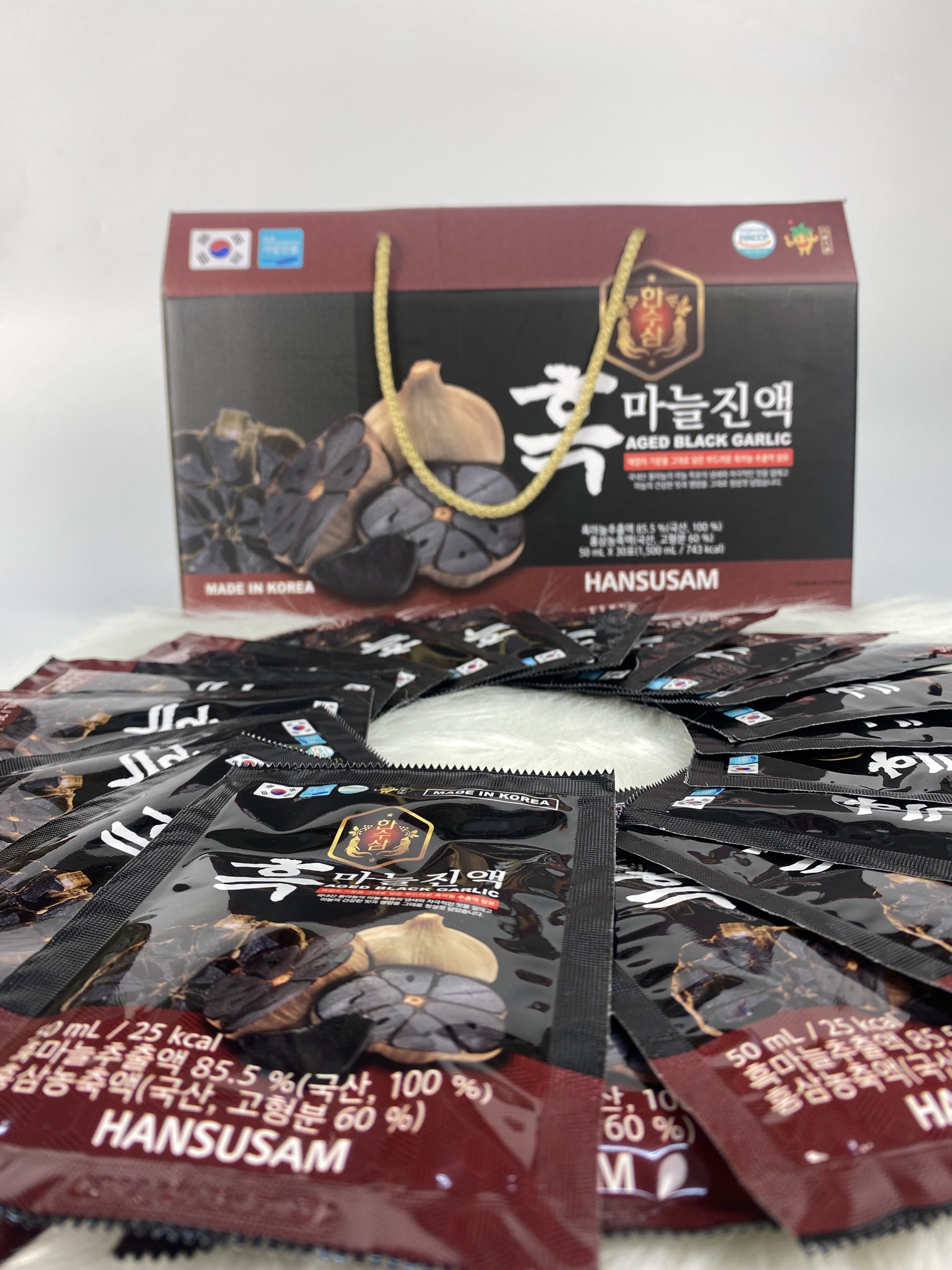 Nước Tỏi Đen Hàn Quốc là một trong những sản phẩm chăm sóc sức khỏe nổi bật mà nhiều người ưa chuộng. Với hộp 30 gói x 70ml, sản phẩm này hiện đang có giá khoảng 450.000₫, giảm xuống từ giá gốc 500.000₫. Nước tỏi đen này được chiết xuất từ 90% tỏi đen lên men tự nhiên, giúp cung cấp nhiều khoáng chất và vi chất cần thiết cho cơ thể.