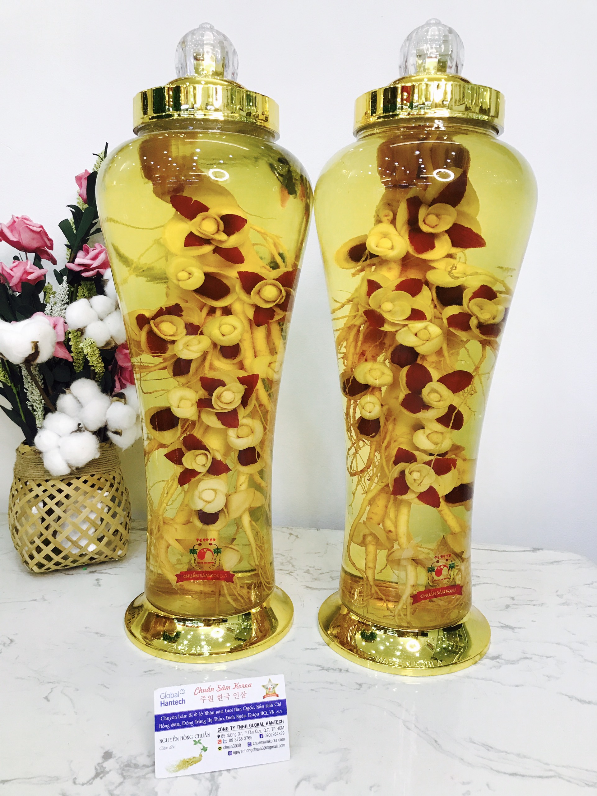 Một số bình tiêu biểu trên thị trường hiện nay bao gồm bình 1 lít với mức giá khoảng 690.000đ, đến những bình lớn như 20 lít tỉa hoa Hồng giá 16.800.000đ. Rượu nhân sâm Hàn Quốc không chỉ là thức uống bổ dưỡng mà còn có tác dụng tốt cho sức khỏe, giúp tăng cường sức đề kháng, giảm căng thẳng.