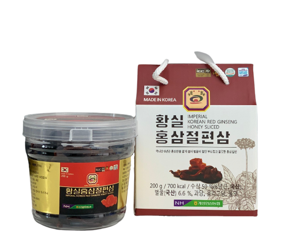 Hồng sâm lát tẩm mật ong Hàn Quốc là sản phẩm tuyệt vời cho sức khỏe, được chế biến từ hồng sâm 6 năm tuổi và mật ong nguyên chất. Với thành phần hồng sâm chiếm đến 70%, chứa các dưỡng chất quý giá giúp nâng cao hệ miễn dịch và cải thiện tiêu hóa.