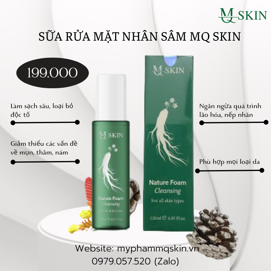 Ngoài ra, Sữa rửa mặt MQ Skin – Nature Foam Cleansing có mức giá khoảng 199.000 VNĐ, miễn phí ship toàn quốc, giúp loại bỏ dầu thừa và bụi bẩn, đồng thời giữ ẩm cho làn da mềm mại và đàn hồi. Sản phẩm cũng chứa thành phần thiên nhiên, rất an toàn cho làn da.