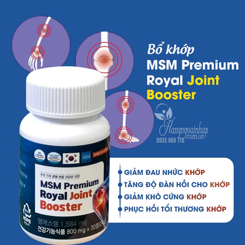 Nếu bạn đang tìm kiếm giải pháp cho các vấn đề liên quan đến xương khớp, Thuốc Xương Khớp Hàn Quốc MSM Premium Royal Joint Booster có thể là một lựa chọn tuyệt vời. Sản phẩm này được biết đến với khả năng chống viêm mạnh mẽ, giúp giảm đau khớp và cải thiện khả năng vận động. Nhiều nghiên cứu đã chỉ ra rằng MSM có thể làm giảm viêm, sưng và cứng khớp, hỗ trợ điều trị các bệnh thoái hóa khớp hiệu quả.